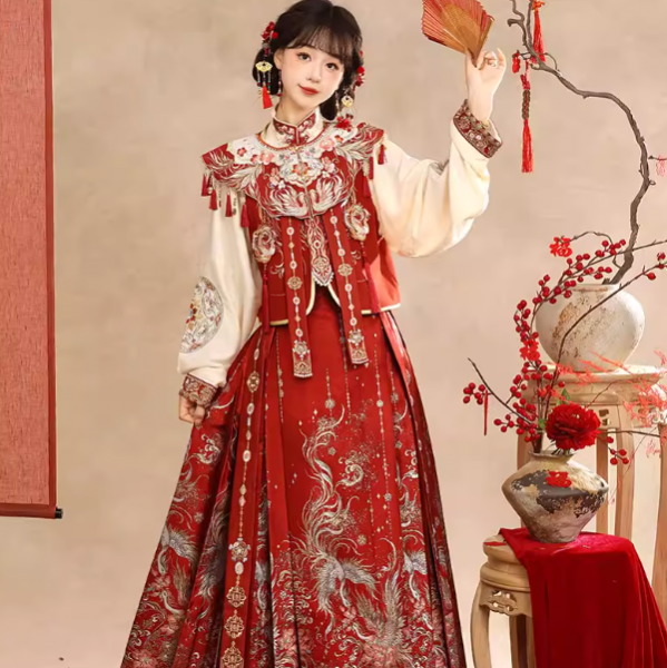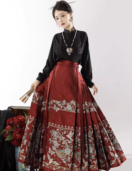 菩萨蛮新中式汉服女国风妆花红色马面裙
